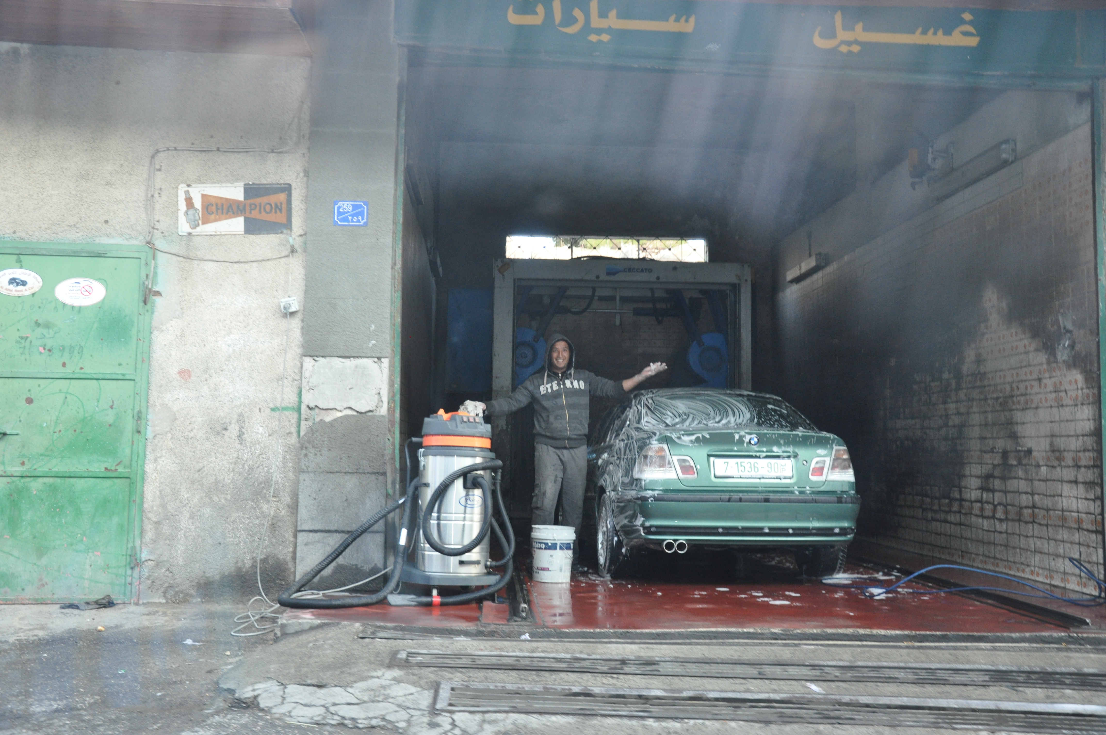 Un jeune palestinien dont le garage est face au mur, de l’autre côté de la rue large de quelques mètres, lave sa voiture. Je braque mon objectif et il répond d’un sourire désarmant :