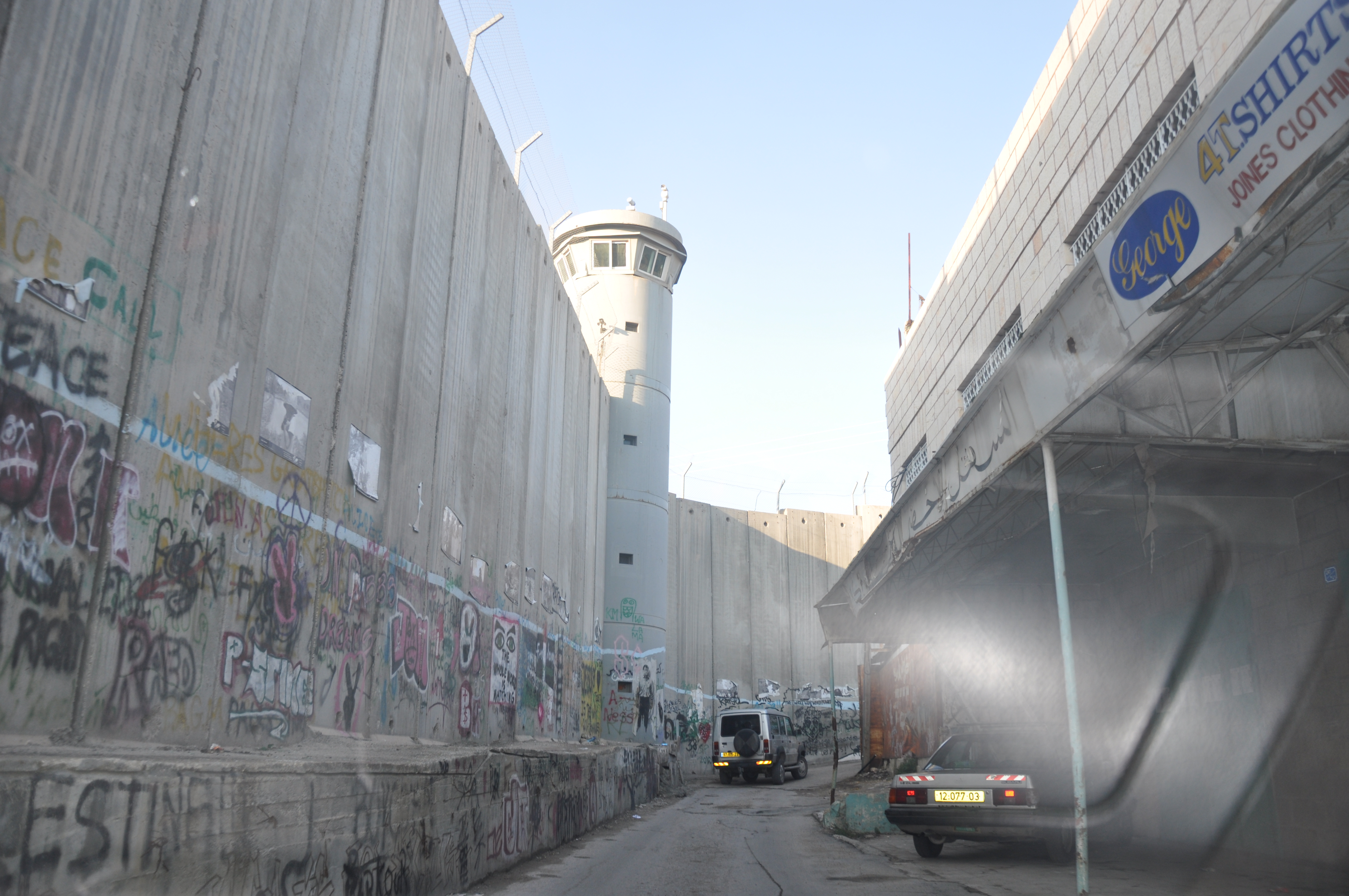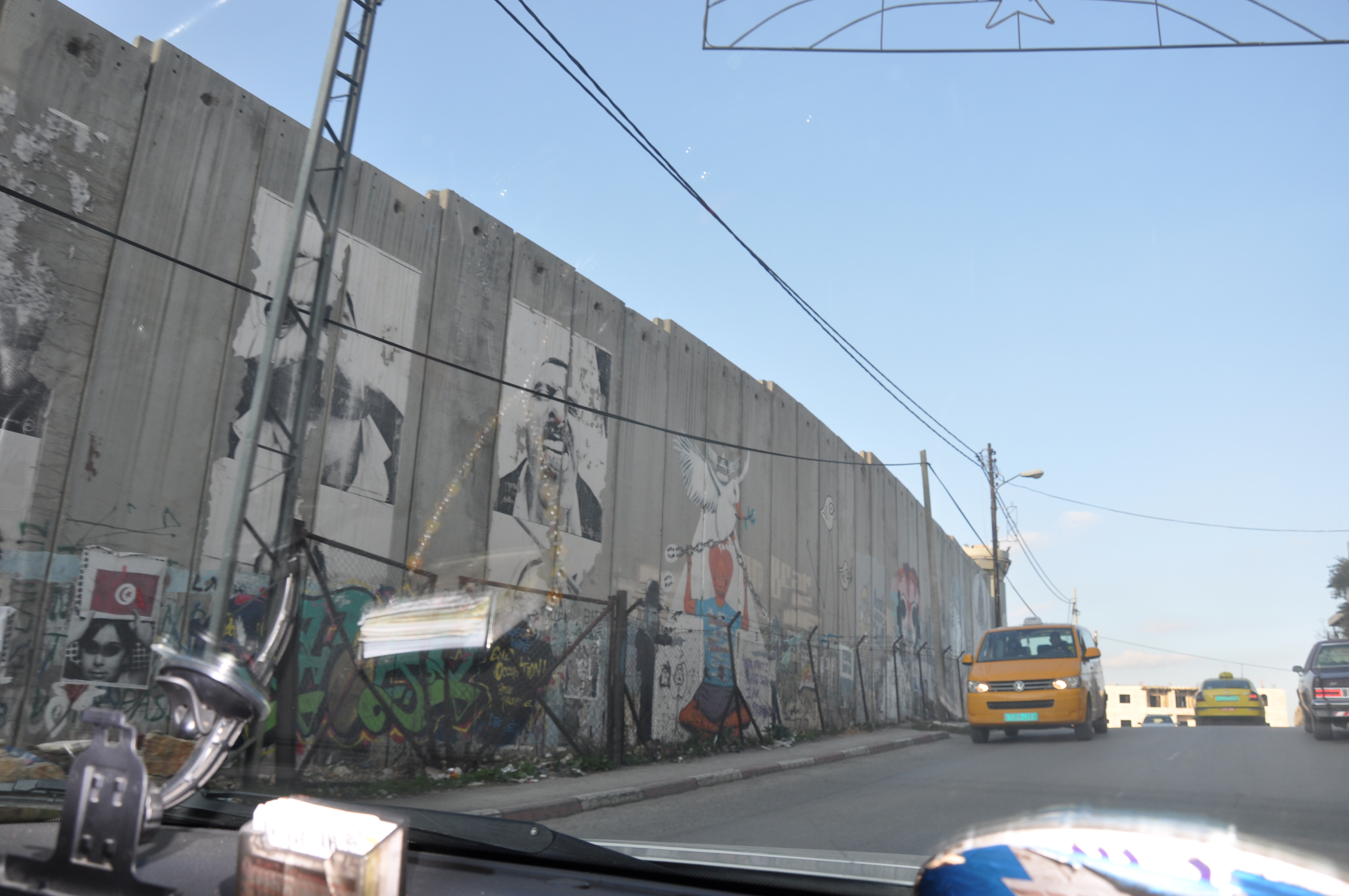 Notre chauffeur a 36 ans, m’explique que le chemin jusque Bethléem est normalement très rapide mais la multiplication des check points allonge le trajet de 20 minutes. Notre trajet justement se passe bien, nous roulons vite. Le passage au premier check point est ahurissant : désert, une jeune soldate d’à peine 1.60 mètres lève mollement une main vers Raed qui l’a précédé d’un salut, et c’est tout. Raed m’informe que nous sommes en Palestine.